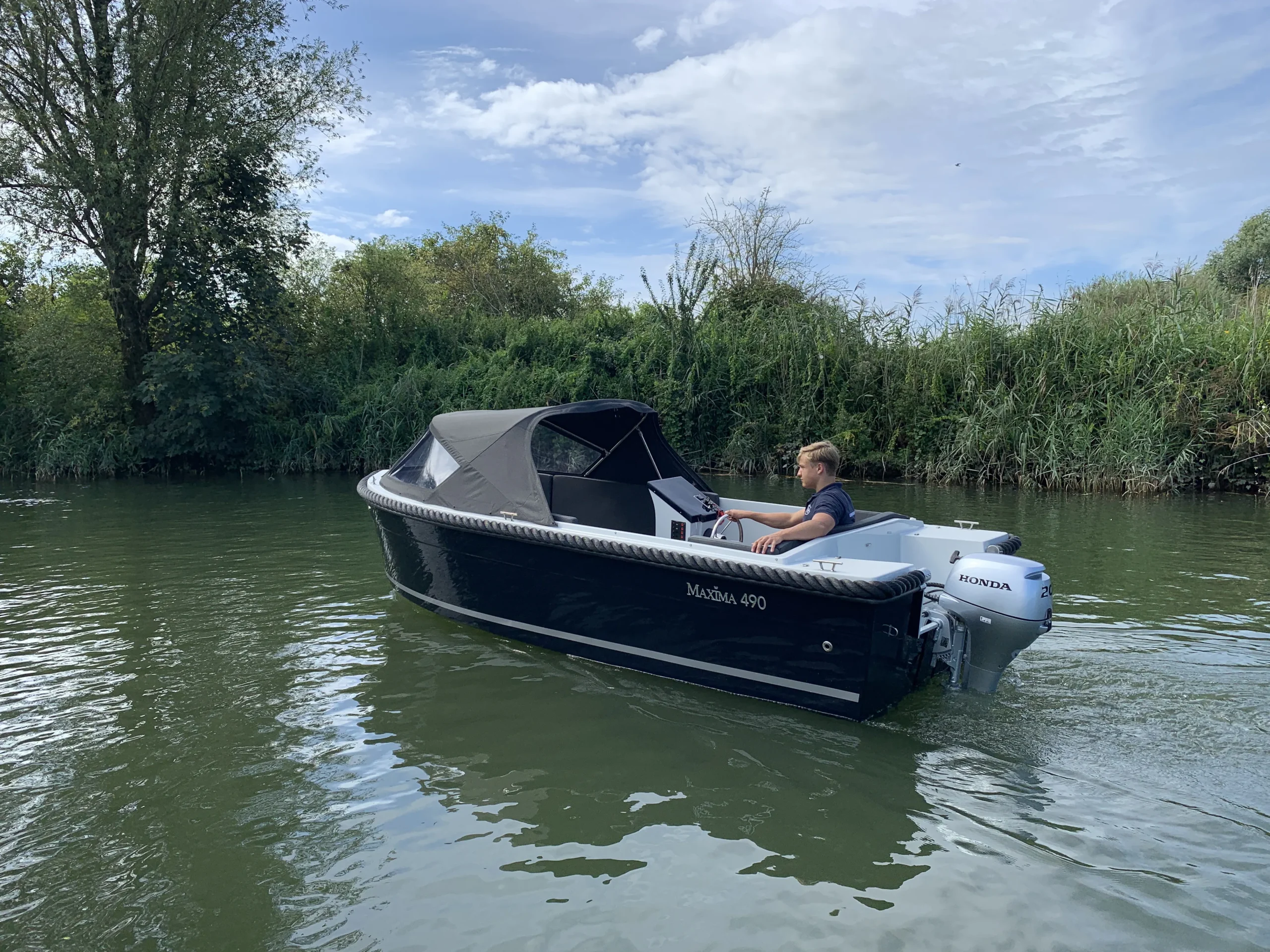 De Maxima 490 is uniek in zijn soort. Een modern jasje voor deze sloep met strakke romp en zeer veel binnenruimte, zorgt ervoor dat hij de concurrentie omver blaast..